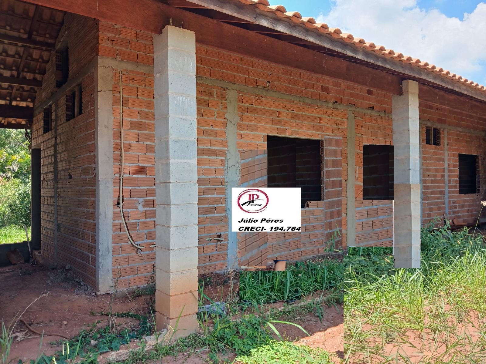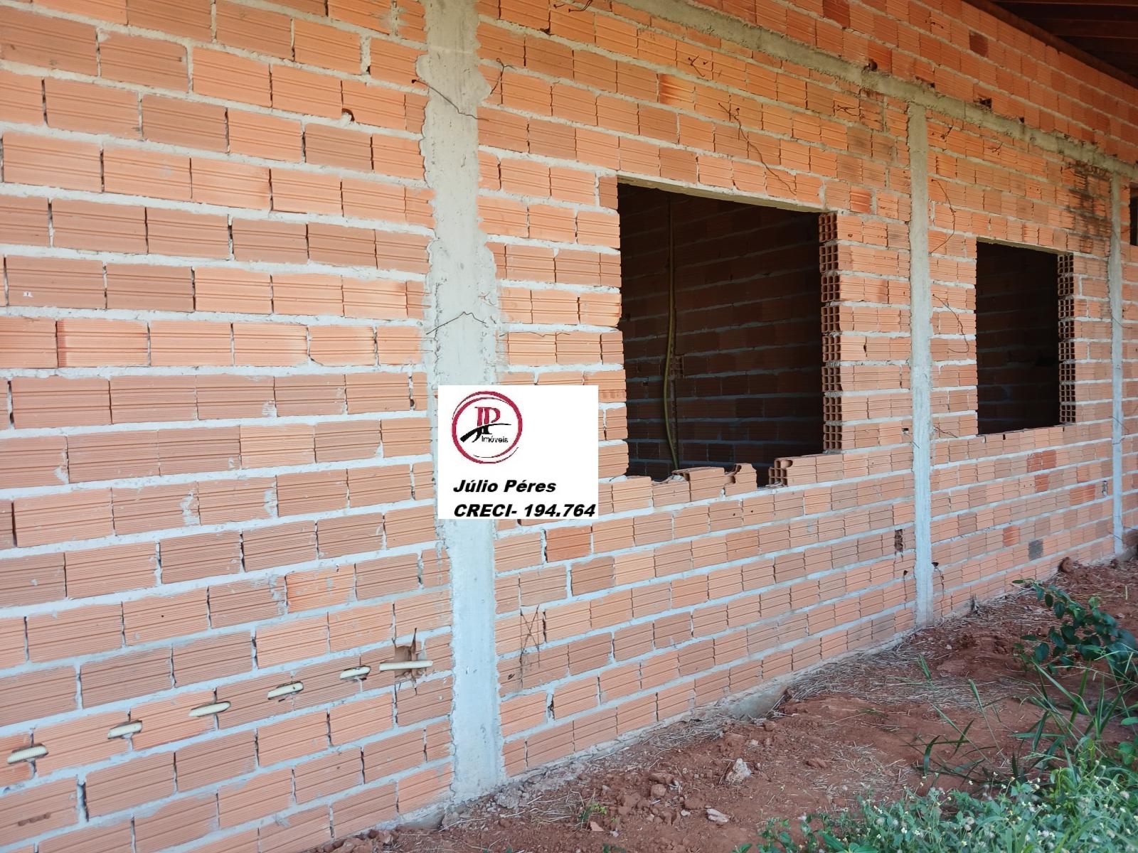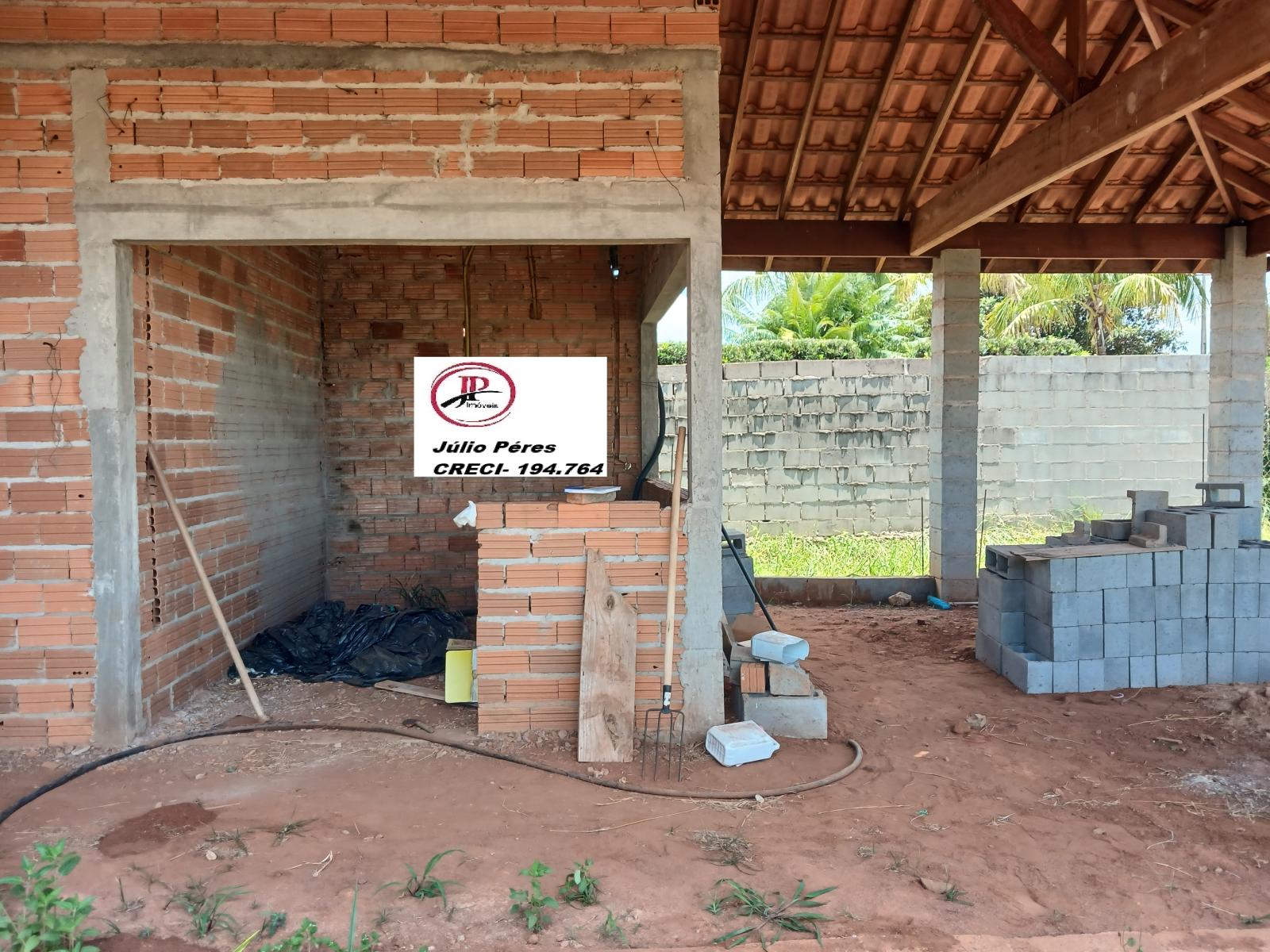 Vende uma chácara medindo 1.250 mts², em condomínio, fechado, com uma casa em construção, iniciada, casa contendo 3 quartos, 1 suite , WC social, sala, copa/cozinha, área Gourmet, 2 WC esterno , Lavanderia e mais um quarto fora, murada com água do condominio.